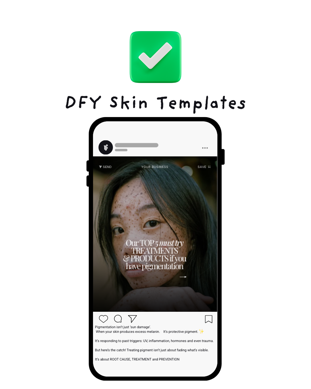 Get months of proven, industry-specific DFY templates so you never feel stuck or overwhelmed on social media again!